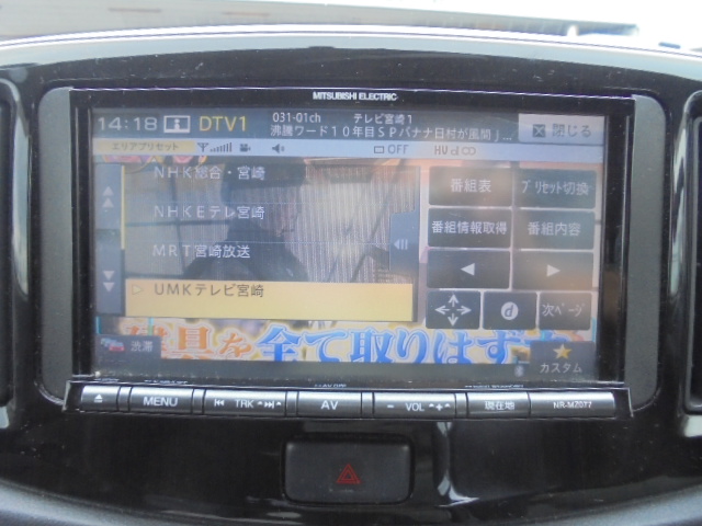 カーナビ:三菱製NR-MZ077 メモリーナビ地デジフルセグTV(CD/DVDブルートゥース対応)